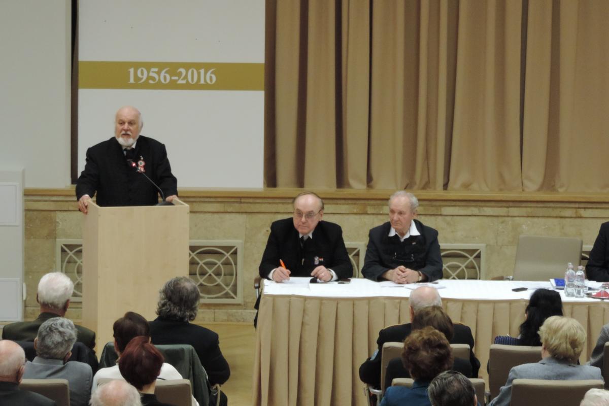 Dr. Lomnici Zoltán tiszteletbeli elnök elismeréssel szólt az 1956-os Magyar Szabadságharcosok Világszövetsége tevékenységéről. Felhívta a figyelmet arra, hogy egyre kevesebb a forradalom és szabadságharc még élő résztvevője, tanúja. Ezért minél többet meg kell szólaltatni közülük, hogy mondják el 1956 igaz történetét.